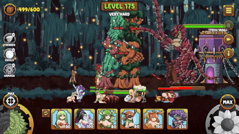Flash game "Age of War" did it well before battle cats.