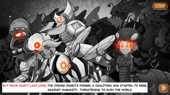 Your objective is to defend your base and eliminate the Cyborg Insects while destroying their Hive.
